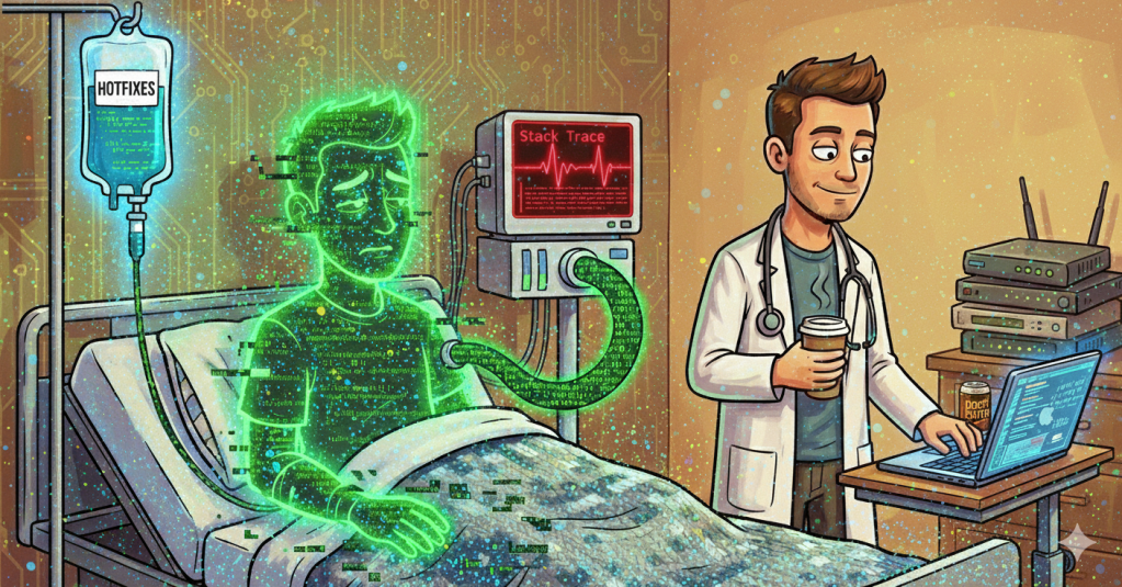 את התזכורת הכואבת הנ"ל קיבלתי שוב במהלך אישפוזי האחרון. כפי שקרה בפעם הקודמת, ברגע שצלחתי את שערי הטריאג' במיון, הפכתי להיות עוד באג ברשימה הארוכה של חולים הממתינים שמישהו יטפל בהם. ועד אז, אתה יכול להיחנק. בקיצור טיפול הייטקיסטי סטנדרטי לבאגים. חשבתי שאני משהו מיוחד, פיצ'ר מתוחכם. וגיליתי שאני רק עוד באג בין המון אחרים.